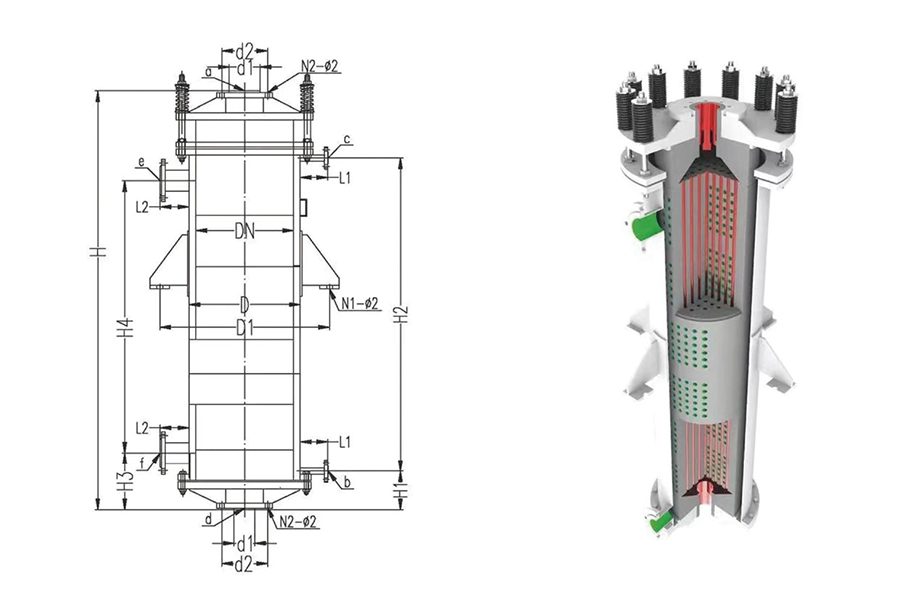 圓塊孔式石墨換熱器:采用全新YKB結(jié)構(gòu),整體石墨塊加工,換熱塊無(wú)中心孔,利用率更高,性能可靠。采用先進(jìn)的全自控鉆床鉆孔,換熱塊間依靠聚四氟乙烯墊片進(jìn)行密封,且設(shè)備上部加裝壓力彈簧作為溫差應(yīng)力補(bǔ)償裝置。與YKA相比,密封更加可靠。