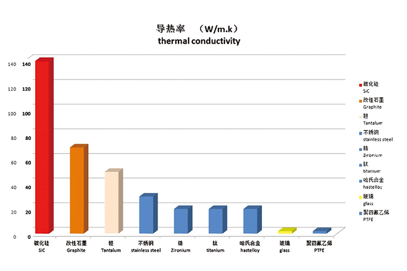碳化硅換熱器是一種利用碳化硅陶瓷材料作為傳熱介質的新型換熱器。碳化硅是一種單相、無壓燒結的碳化硅陶瓷,具有高純度、細晶和極低氣孔率等優良特性。在強腐蝕工況可以作為不銹鋼、金屬鉭、哈氏合金、氟塑料和其他傳統材料的理想替代品。此材料可應用于化工、醫藥、冶金等行業的高溫、高壓、強腐蝕、高磨損的極端環境中。高性能碳化硅換熱器具有碳化硅陶瓷的高強度、耐高溫、高導熱和全面的耐酸堿腐蝕特性,特別適用于高溫、高壓、強酸堿腐蝕、高速氣流沖刷、顆粒磨損等苛刻工況條件。其優良的熱交換效率可滿足節能減排和環保的迫切需求。