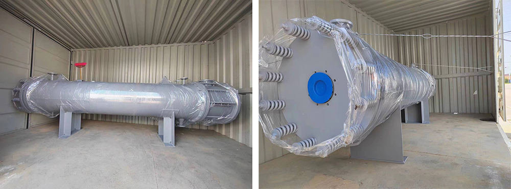 國內(nèi)某化工企業(yè)生產(chǎn)白碳黑、三氯氫硅、四氯化硅訂購的石墨設(shè)備發(fā)貨。物料為強酸及有機(jī)物,殼程為-28℃冷凍鹽水,殼體材質(zhì)為16MDR低溫板材。